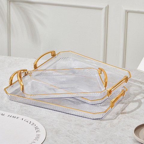 Plato de frutas y nueces de PET transparente de gran capacidad con borde dorado creativo de estilo escandinavo